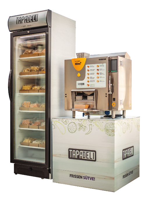 A TAPADELI egy kis helyigényű, gyorsan telepíthető, „kulcsrakész”, egyszerűen és szakképesítés nélküli (1 fő) kezelő személyzettel vagy akár önkiszolgáló módban üzemeltethető étkeztetési és konyhatechnológiai rendszer. A gépekkel felszerelt, installációkkal és egyéb kiegészítőkkel ellátott egység a rendszerhez fejlesztett prémium minőségű, porciózott, előre csomagolt, olajban süthető ételekkel biztosít melegkonyhai menüsort.